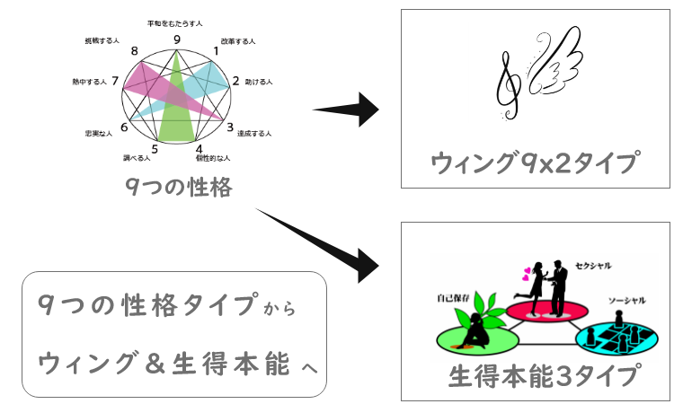 一方、サブタイプのウィングや生得本能まで落とし落とし込むと、自分のタイプがハッキリとしていきます。