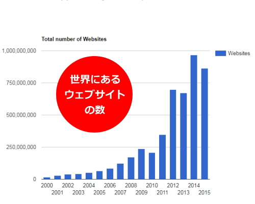 今日(2015年頃)、世界中に10億を超えるウェブサイトがあるぜ!
